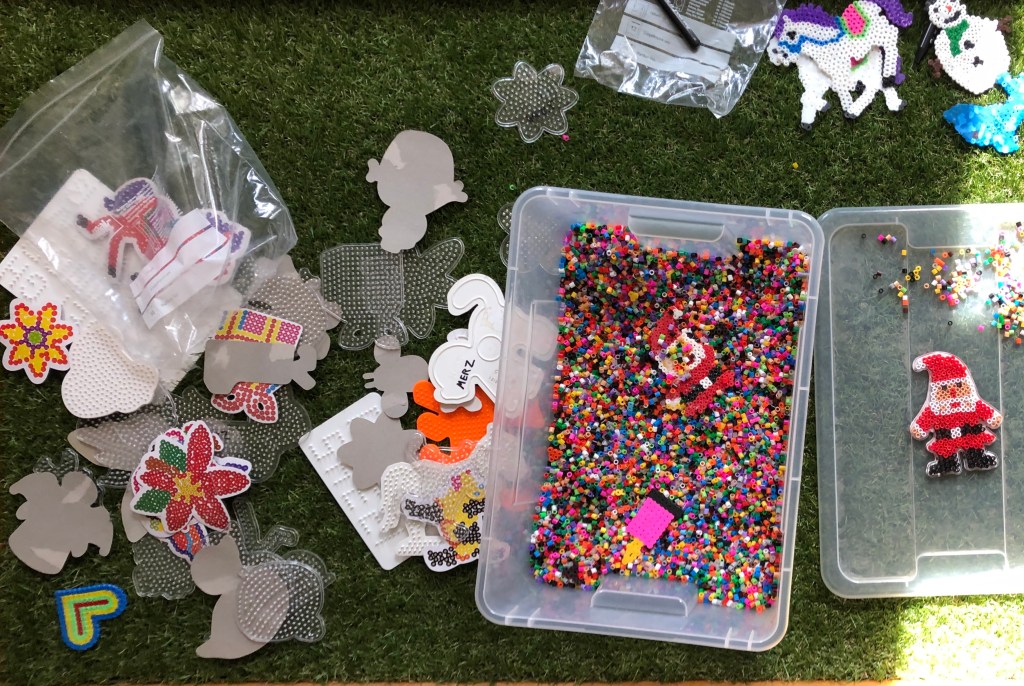 da ich morgens ein Meeting hatte, hat die Kichererbse Papa geholt, damit er mit ihr bastelt. Sie hat sich für Bügelperlen* entschieden und ich war gespannt, was ich nachher bügeln darf. Was soll ich sagen? Ich durfte einen Nikolaus* bügeln. Man kann ja nicht früh genug anfangen Geschenke vorzubereiten 😉